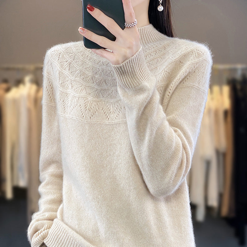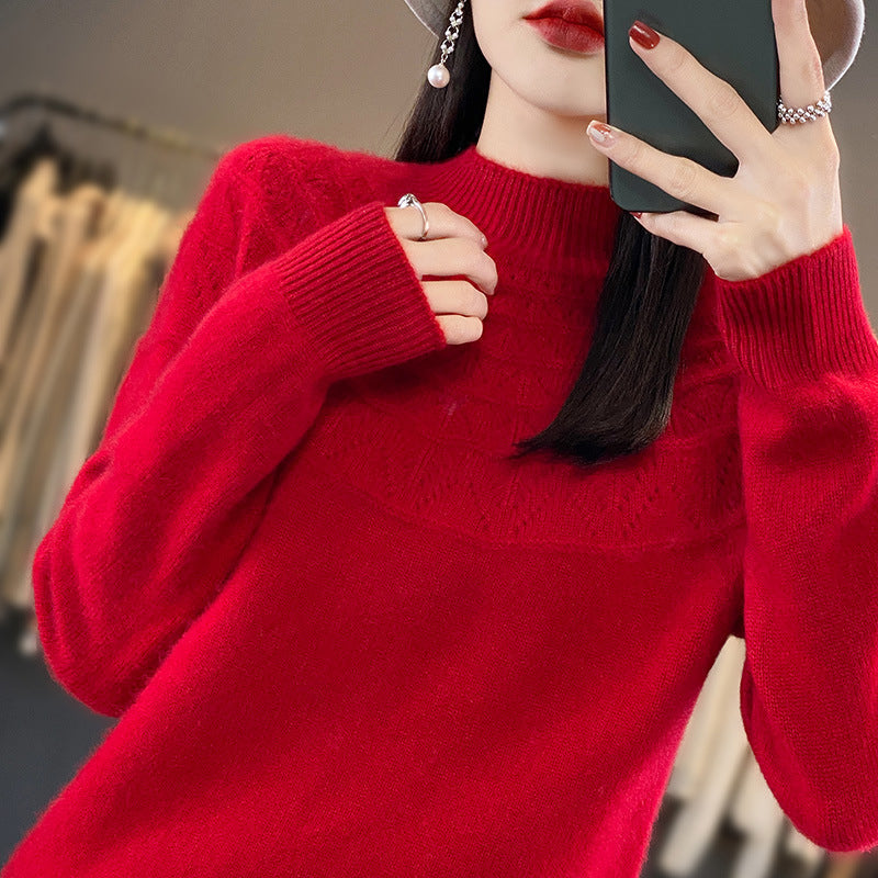 Nisje design med spesiell halv turtleneck og hul mønster, full av fransk elegant stil, klassisk, mote, aldri utdatert!