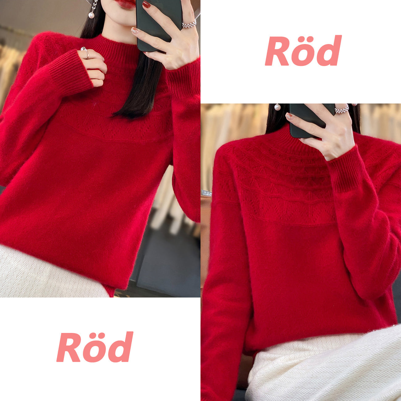 Allsidige kombinasjoner: Den er perfekt å bruke alene eller i lag med jakker eller kåper. Også elegant å kombinere med skjørt, bukser og jeans.