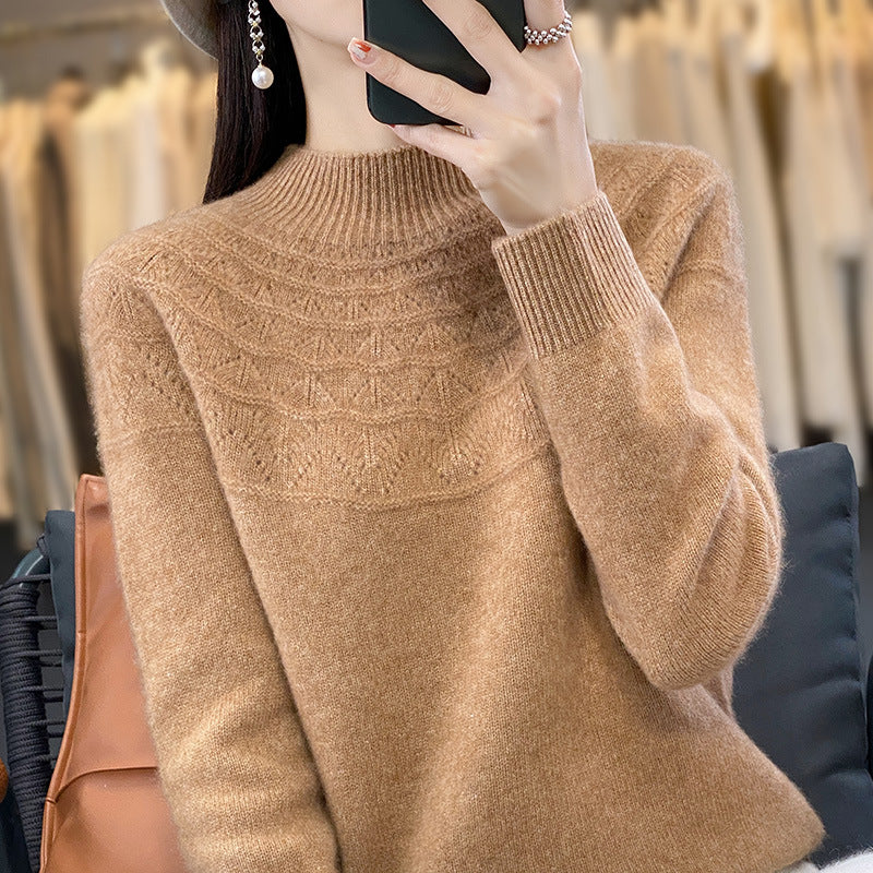 Strikket genser med halvhøy hals for kvinner
