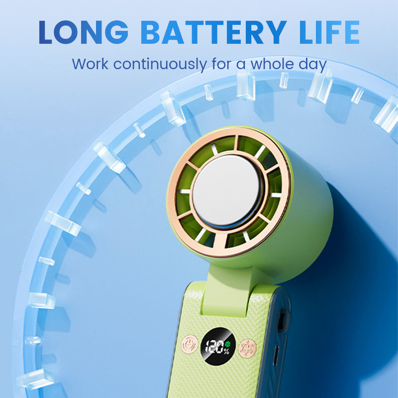 LANGVARIG KJØLEEFFEKT – Utstyrt med et høykapasitets litiumbatteri, støtter denne viften flere timers kontinuerlig bruk. Det energisparende systemet opprettholder optimal kjøleeffekt uten behov for hyppig opplading. Med Type-C hurtiglading kan du raskt lade opp og si farvel til batteriangst.