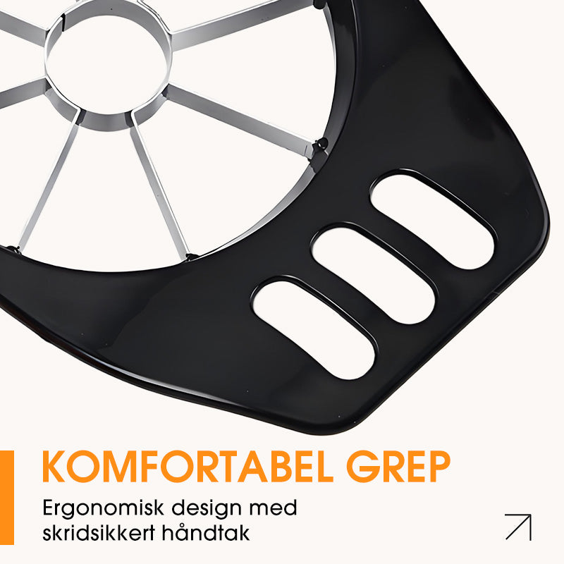 JEVN SKJÆRING – Oppnå perfekt jevne skiver hver gang, noe som gjør rettene dine visuelt tiltalende og enklere å servere. Enten du lager et fruktfat eller tilsetter epleskiver i en salat, gir de konsistente skivene profesjonelle resultater. Denne fordelen forbedrer ikke bare presentasjonen, men sikrer også jevn tilberedning og smaksfordeling.