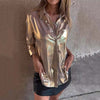 Pakken inkluderer: 1 * Skimrende metallisk skinnknappskjorte for kvinner