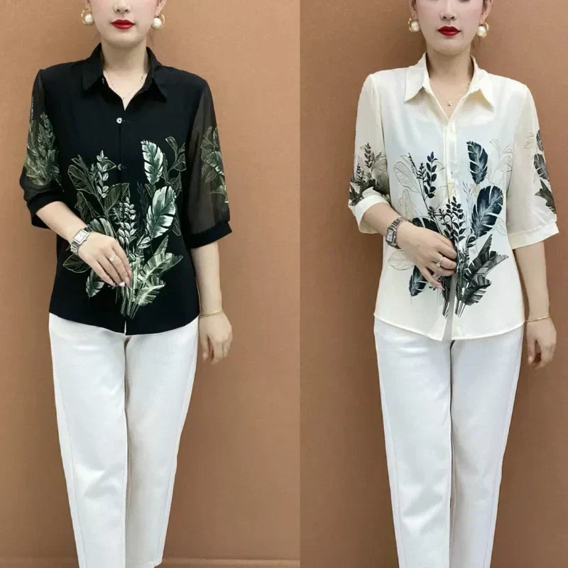 Kortermet tynn skjorte med trykk for kvinner (50% OFF)