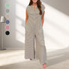 ERMELØS OG RUND UTSKJÆRING: Den ermeløse silhuetten gir en luftig, flatterende passform og sørger for maksimal luftsirkulasjon, noe som gjør denne jumpsuiten ideell for sommeren. Den klassiske runde halsen gir et sofistikert og elegant utseende, samtidig som den gir god dekning og komfort.