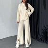 Kvinnens Koselige Ribbestrikket To-delt Sett med Splitt-bukser