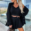ALLSIDIG DESIGN - Vårt 3-delte sommersett for kvinner inneholder en stilig ermeløs topp, et par enkle shorts og en lett jakke som kan brukes sammen eller hver for seg.